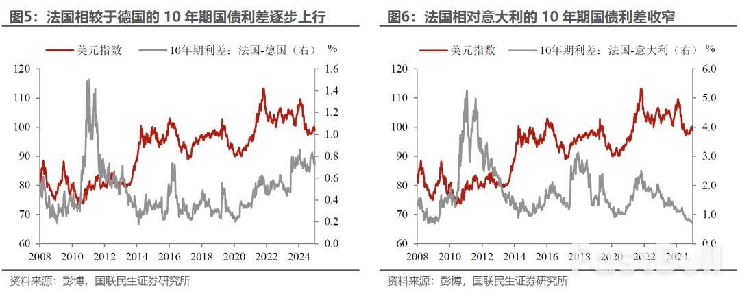 如果以法国为代表的高负债国家财政整顿不力,导致其与德国的国债利差扩大,将成为欧元走弱、美元反弹的重要导火索。