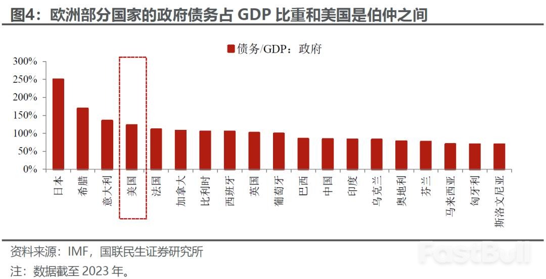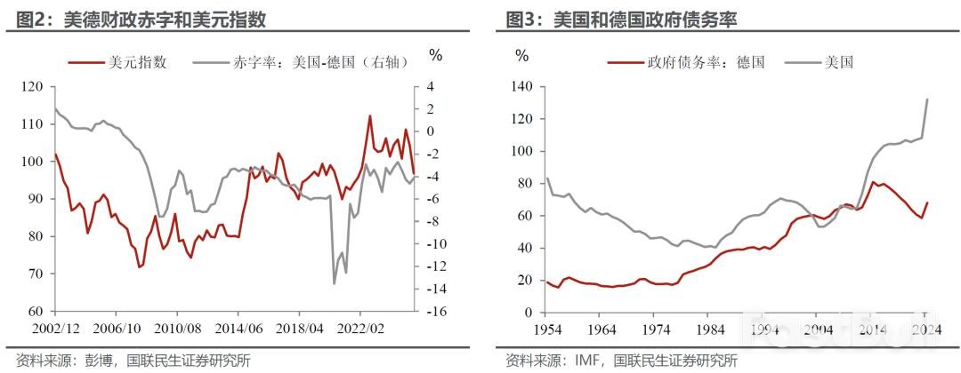 一方面,德国财政政策的调整具有更强的转向标志性意义。另一方面,美国政府的债务负担远高于德国,若财政赤字继续扩大,可能对其货币信用造成负面影响。
