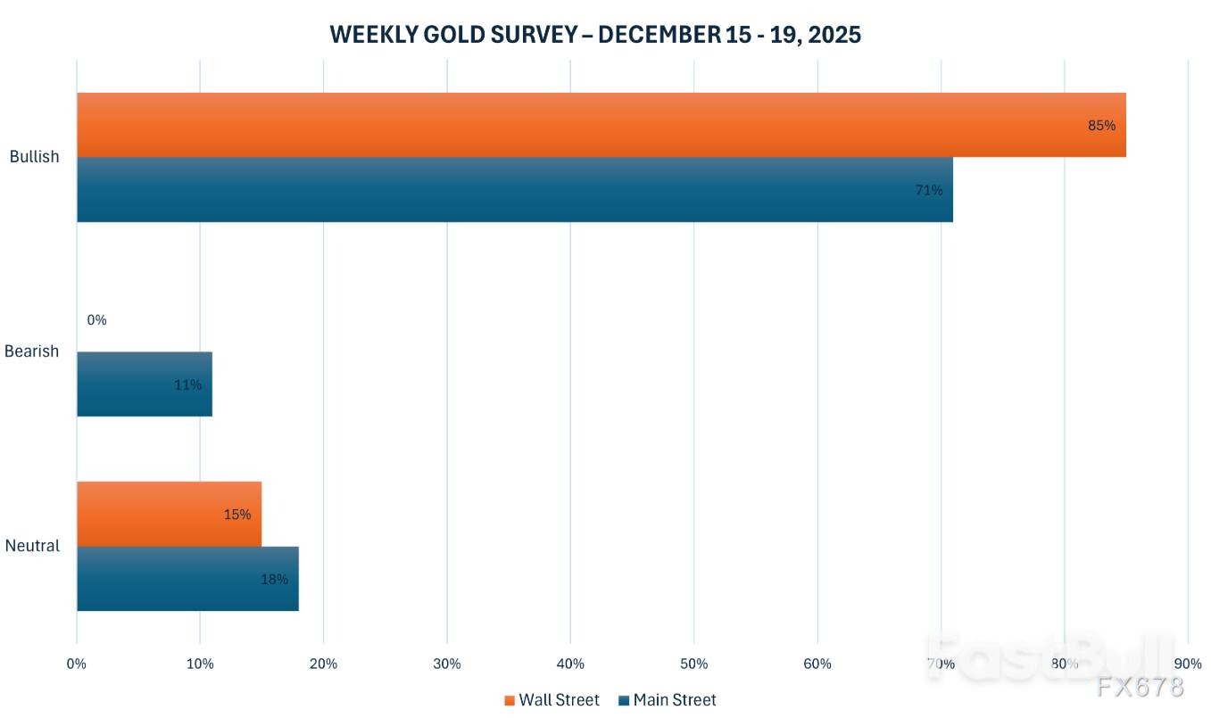 散户投资者的情绪同样高涨,有71%的受访者看涨黄金。Walsh Trading总监Sean Lusk指出,黄金已成为市场的主流趋势,中央银行、养老基金和投资基金都在持续买入,短期的获利了结不会改变其技术上的上涨格局。