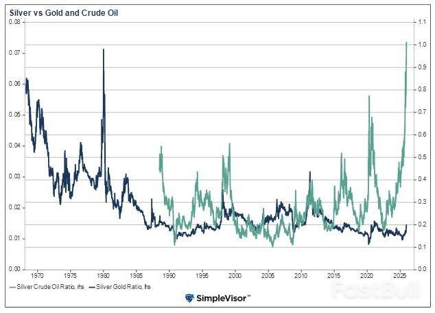 目前,白银与原油的比值已攀升至历史高位,这通常预示着原油价格即将大涨,或白银将面临剧烈回调。而白银与黄金的比值虽然近期有所回升,但仍处于历史相对低位,暗示白银相对黄金仍有上涨空间。