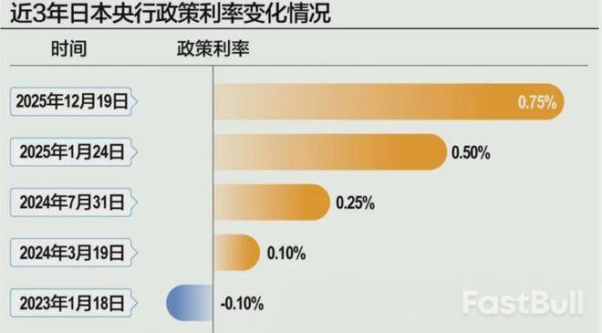 与降息阵营形成鲜明对比的是,日本央行在12月19日逆势加息25个基点,将政策利率推高至0.75%,创下1995年以来的最高水平。此举正式宣告了日本持续近30年的超宽松货币政策时代走向终结。