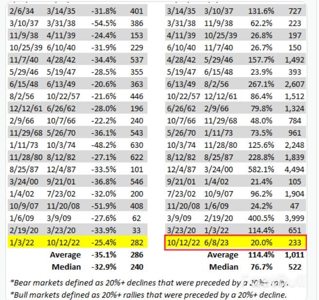 Bespoke Investment Group的研究数据显示,自1929年大萧条以来,标普500指数经历的牛熊周期呈现出显著的不对称性: