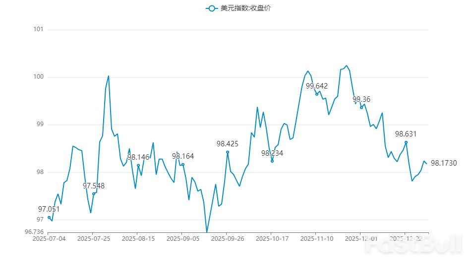 指数从年初约110的高位,一路震荡下行。特别是在4月,受“对等关税”政策冲击,一度跌至97.92,创下三年新低。尽管下半年市场有所企稳,但整体弱势格局未能扭转。