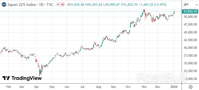周一(1月5日),亚洲股市整体上涨,其中韩国基准股指暴涨3.43%,再刷历史新高;日本股指也涨近3%,回到纪录高位附近。