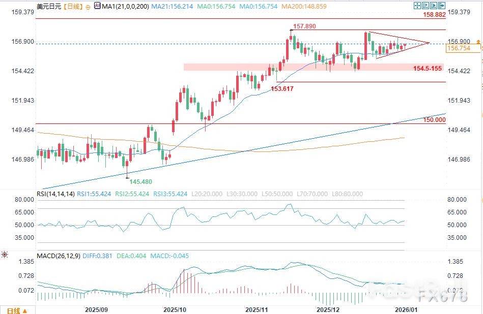 看空的主要理由是,汇价在去年4月开始的涨势中,未能刷新2025年1月创下的158.88高点。涨势在11月受阻于158.00下方。然而,目前的价格形态更像是上涨途中的盘整,而非趋势反转的信号。