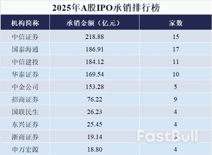 2025年"百亿承销俱乐部"扩容至5家,席位依次为中信证券、国泰海通、中信建投、华泰联合及中金公司。