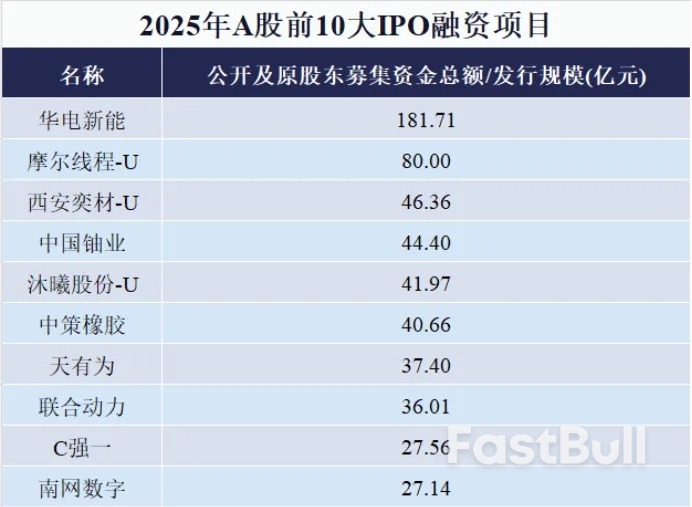 复盘2025年A股融资额前十的IPO项目,中信证券狂揽摩尔线程、西安奕材两单"巨无霸";相比之下,国泰海通仅将联合动力一单收入囊中。