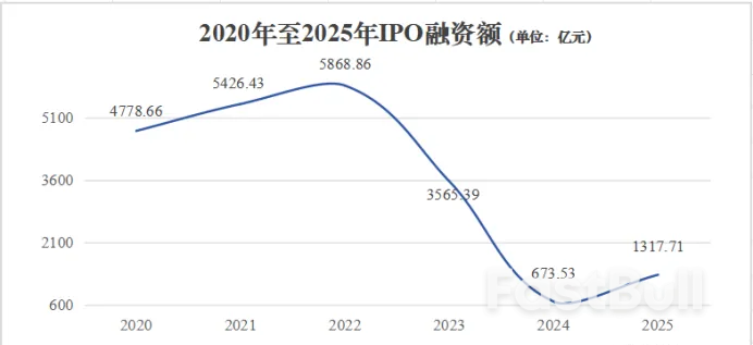 2025年A股1317.71亿元的IPO融资额,不及2022年的四分之一,仅有2023年的3成左右。