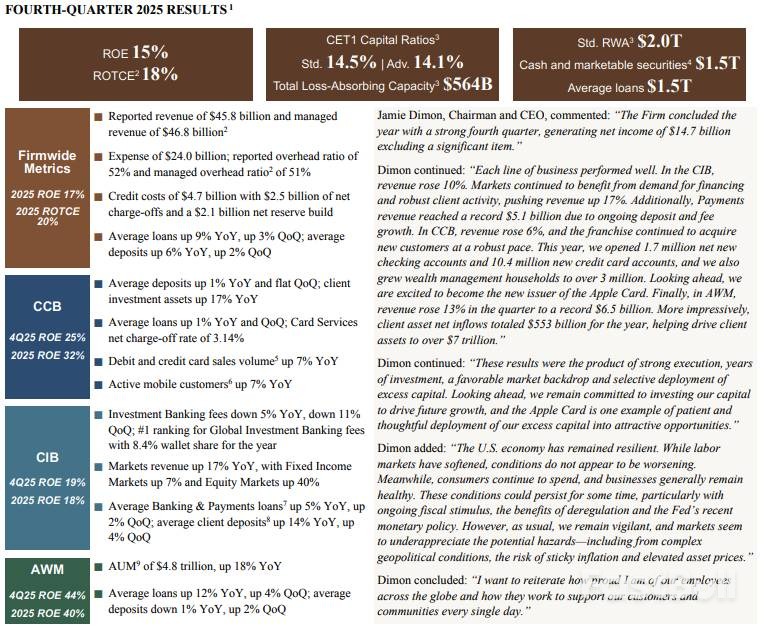 对于投资者而言,财报数字固然重要,但作为“华尔街一哥”,戴蒙对宏观经济和政治风险的看法才是真正的风向标。