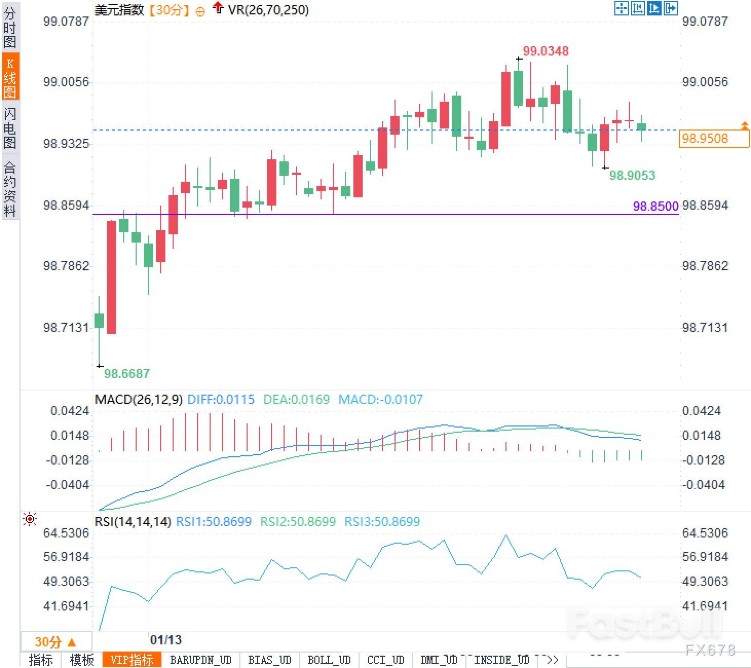 目前,99.0一线构成了心理与技术上的双重压力,而下方的98.8500则成为短期关键支撑。如果该支撑位失守,指数可能进一步下探至98.7区域;反之,若能有效突破并站稳99.0,则有望打开新的上行空间。