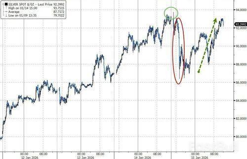 • 纽约期银:COMEX 3月白银期货同样在创下93.75美元上方的新高后跳水,日内最低跌破86.20美元,跌幅近5.8%。
