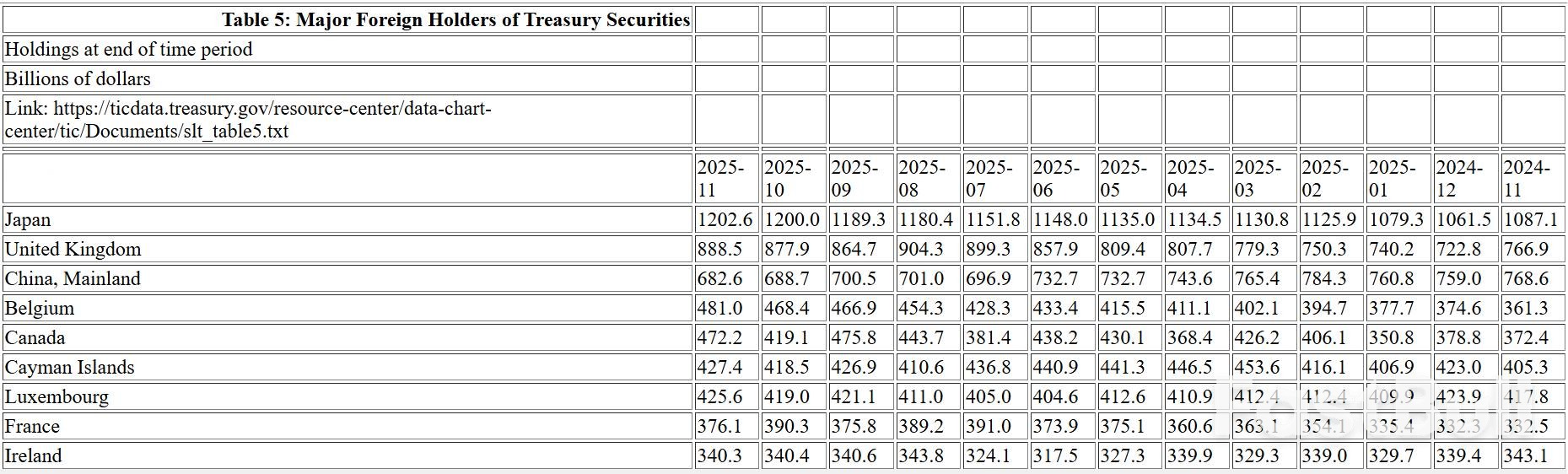 美国财政部预计将于2026年2月18日公布去年12月的TIC数据。