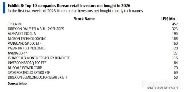 2026年交易大门一开,韩国散户投资者便立刻重启了对美股的购买狂潮。
