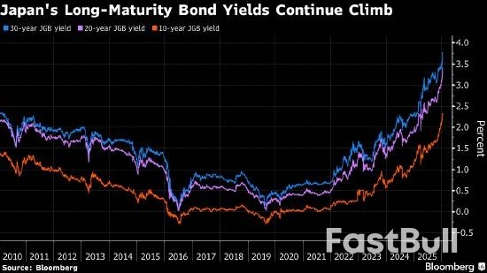 日本40年期国债收益率触及4%,为2007年该债券品种推出以来最高水平,也是日本各期限国债收益率30多年来首次触及4%。30年期和40年期国债收益率均涨逾25个基点。而20年期国债拍卖表现平平,进一步凸显市场对政府支出和通胀的担忧。