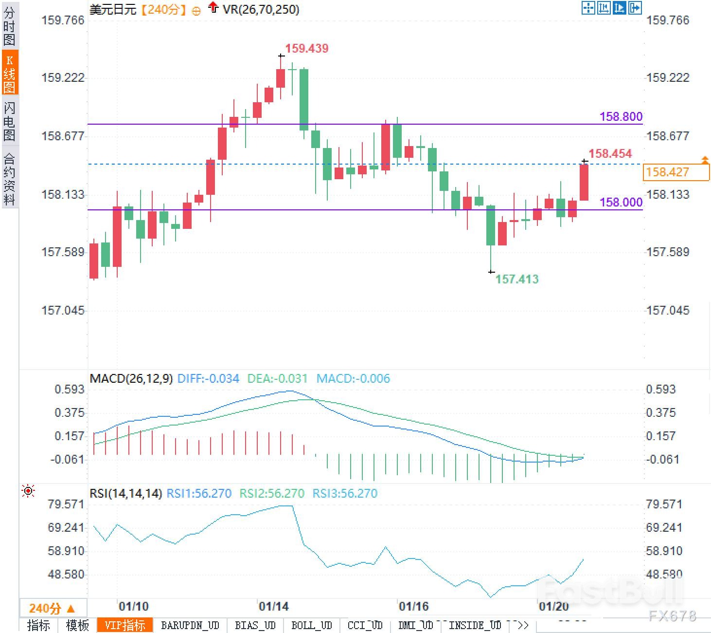 从当前盘面看,价格在波动区间的中上部运行。上方158.800是初步阻力位,一旦突破,可能再次挑战159.4附近的前期高点。下方158.000则是关键的心理支撑,若失守,汇价或将重新测试157.4的低点。