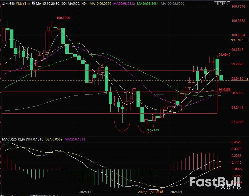 技术上,美元指数目前在98.90的支撑位附近整理。极限调整位置预计在98.63附近。后续需重点关注98.90是否会被有效跌穿,上方压力位则位于99.15和99.23。