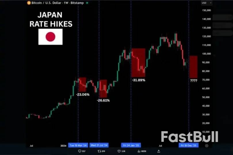历史数据显示,自2024年以来,日本央行的三次加息都伴随着比特币超过20% 的价格下跌。美联储和日本央行的同步紧缩,让全球流动性的大环境雪上加霜。