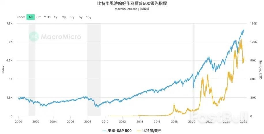 据MacroMicro的数据,比特币的价格的转折点在过去几年中多次领先于标普500指数。因此,一旦作为领先指标的比特币上涨势头停滞,无法再创新高,这就构成了一个强烈的警示信号,其他资产的上涨动能可能也已接近枯竭。