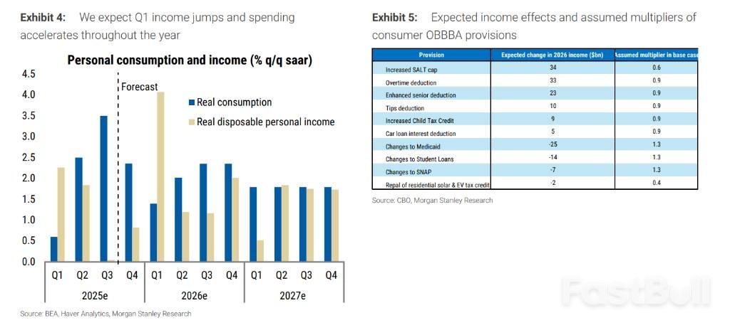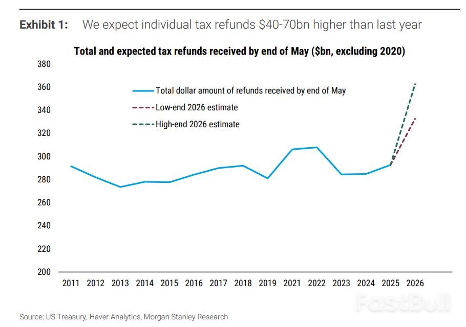 尽管收入数据会非常亮眼,但摩根士丹利认为,这些退税转化为实际消费的比例(即边际消费倾向)可能低于预期。