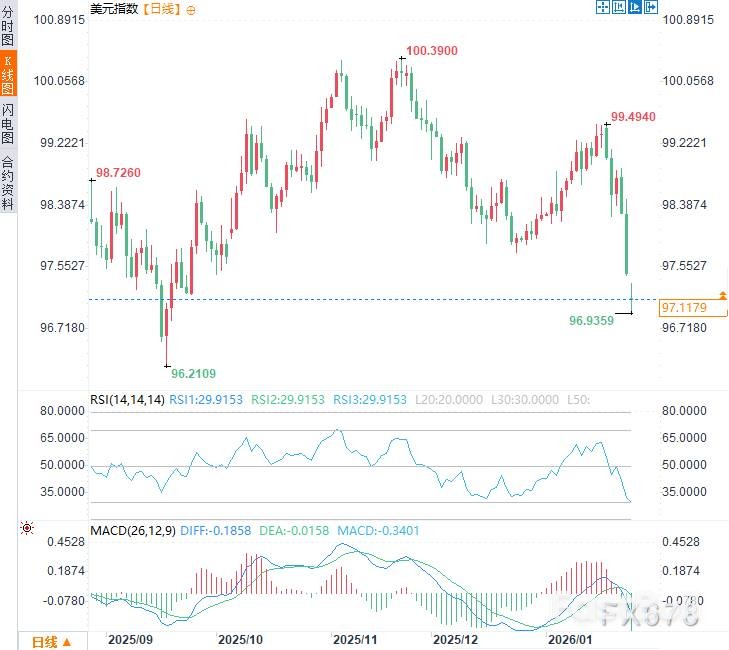 市场对此反应迅速。周一亚洲交易时段,美元指数承压下行,一度跌至96.94,创下四个多月新低。政治僵局的阴云,正直接转化为美元的卖压。