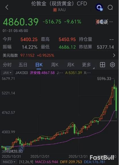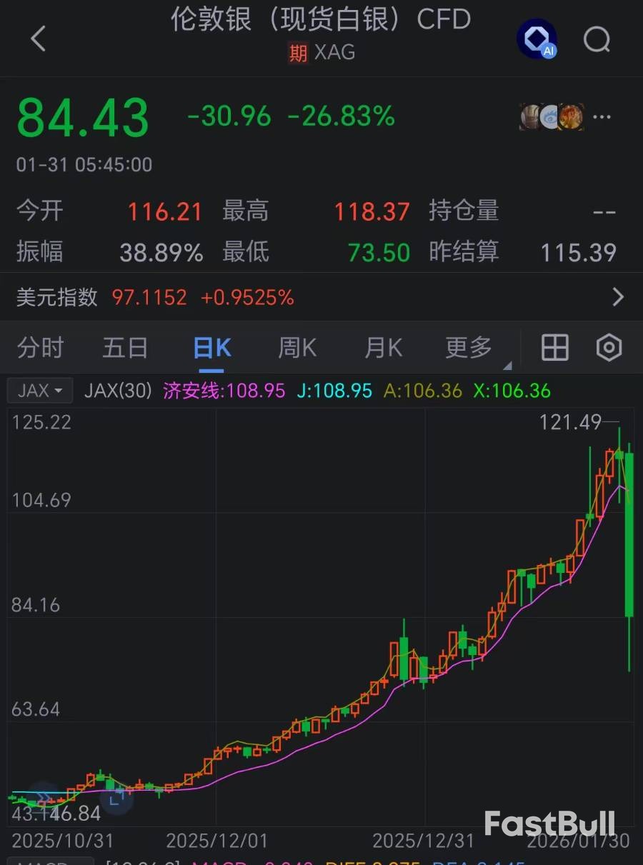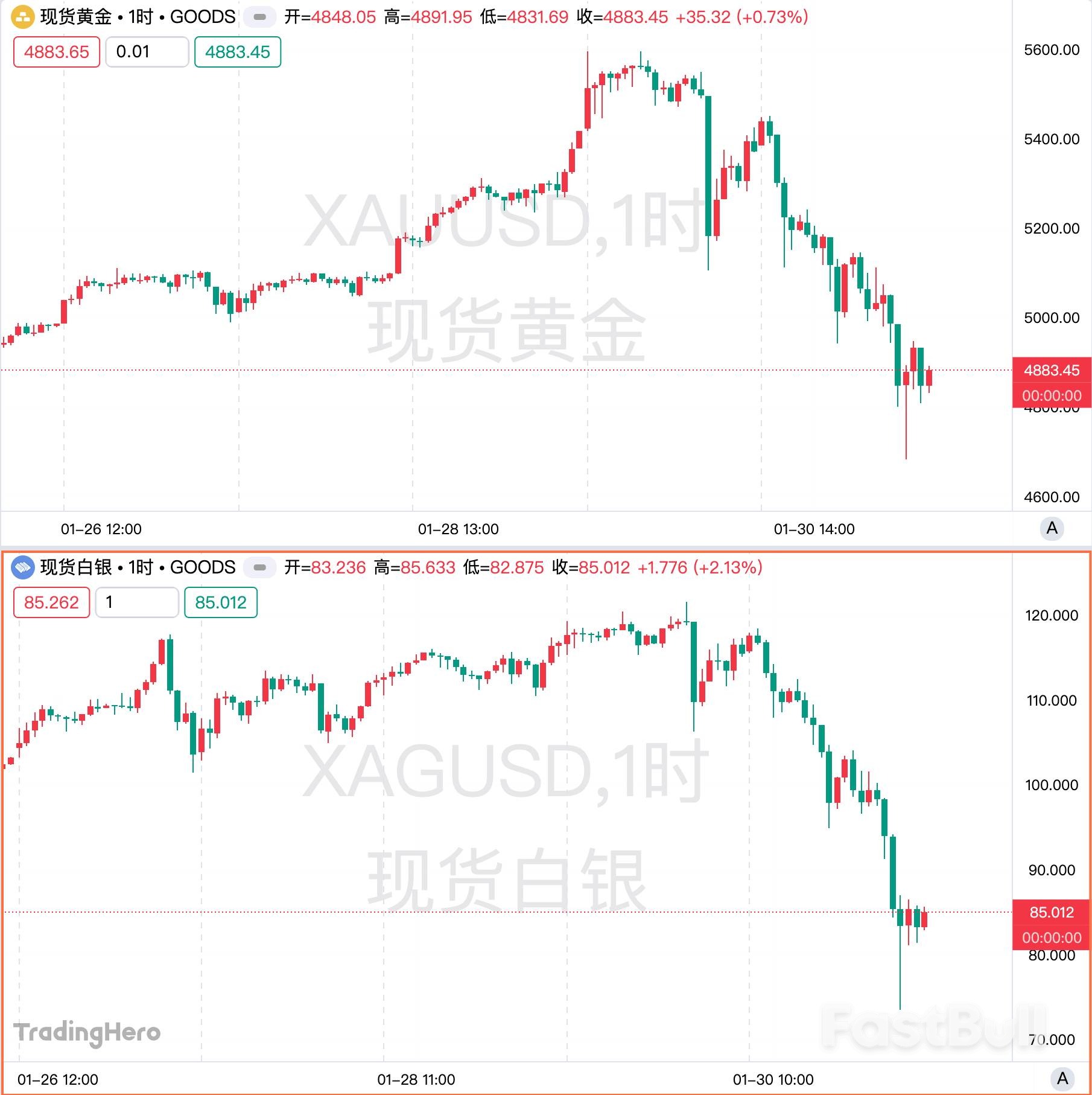 消息公布当天,美元指数应声大涨,录得数月来最强劲的单日表现。然而,贵金属市场却遭遇了一场剧烈抛售。前一天还在刷新盘中历史新高的黄金和白银,双双上演高台跳水。