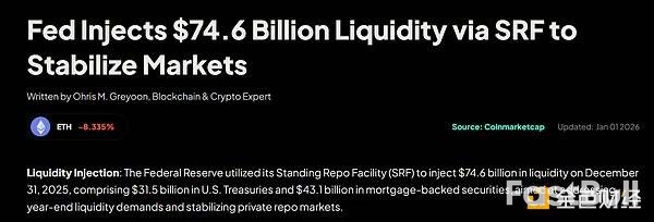 就在交易所提高散户保证金门槛的同时,银行机构却能从美联储获得“输血”。数据显示,12月31日,银行通过美联储的紧急贷款窗口(SRF)借入了创纪录的746亿美元。这个工具的设计初衷就是为合格金融机构提供短期流动性,但个人投资者无法使用。