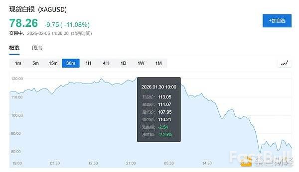 沃什的提名于美国东部时间下午1:45宣布,而白银的崩盘从上午10:30就已经开始。在消息公布前的三个多小时里,银价早已暴跌27%。