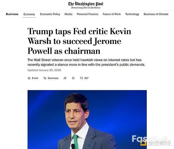 市场很快为这场崩盘找到了一个看似完美的解释:凯文·沃什(Kevin Warsh)被提名为下一任美联储主席。逻辑很简单:沃什是鹰派,意味着利率将维持高位,这对不产生利息的贵金属是重大利空。