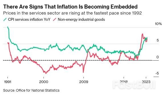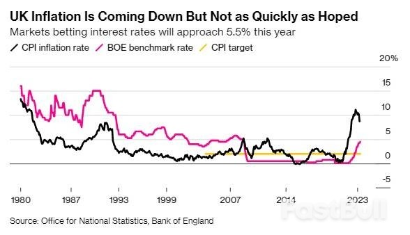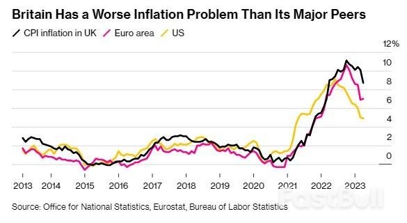 首相苏纳克曾承诺今年将通胀率降低一半。在1月份制定该目标时,人们预计他将轻松实现这一目标,但通胀的粘性比英国央行预期的要高,在过去两个月,通胀都出现意外上升。