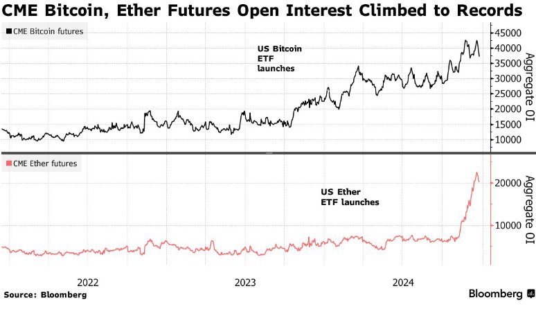 总部位于芝加哥的芝加哥商品期货交易所(即CME Group Inc.)所托管交易的比特币和以太坊期货的未平仓合约(即未结清期货合约)今年达到了历史最高水平。