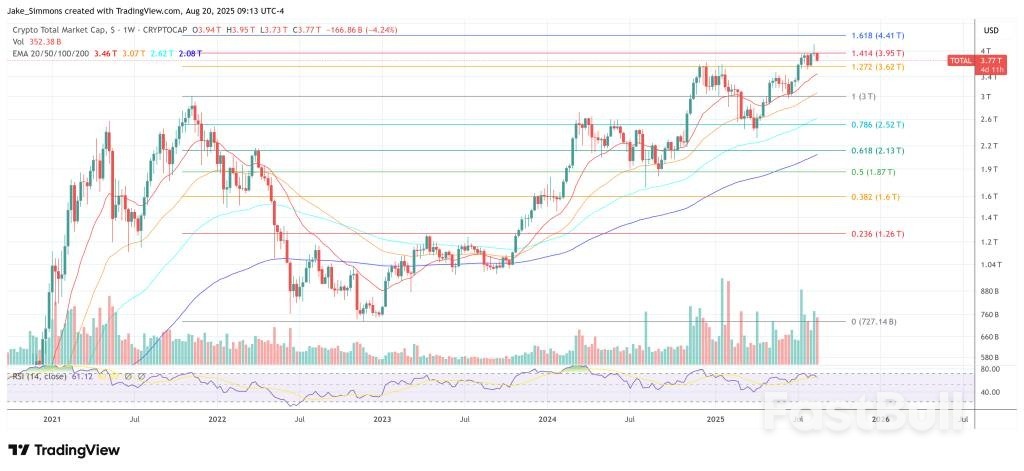 En el momento de la publicación, la capitalización total del mercado de criptomonedas era de 3,77 billones de dólares.
