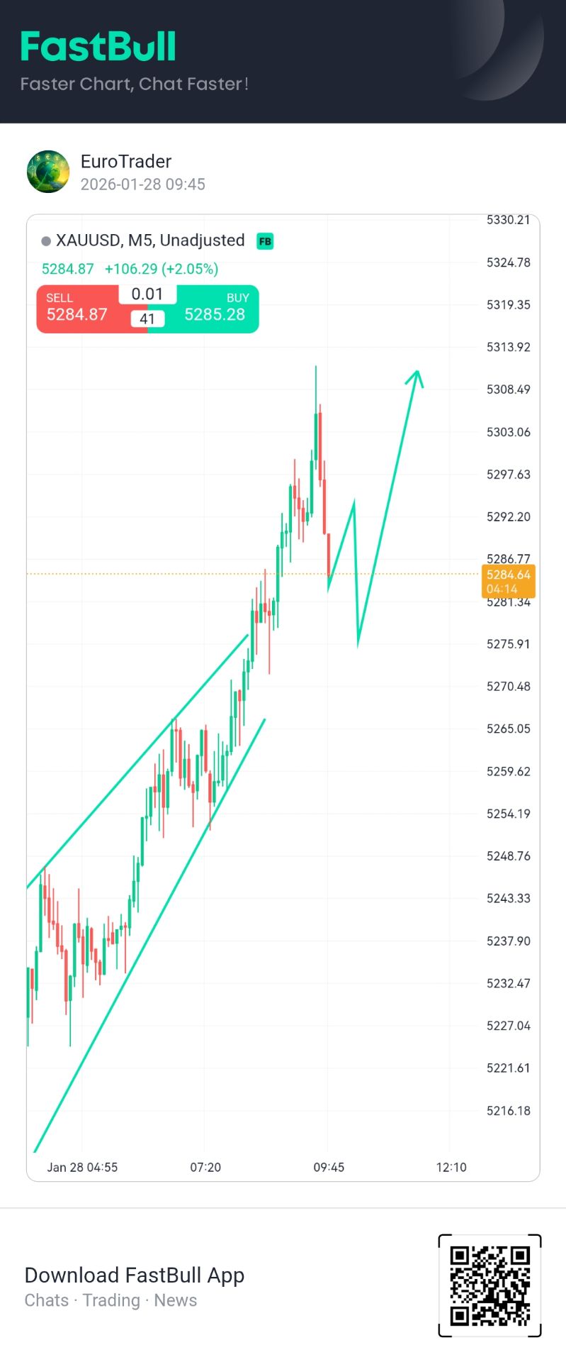 → la pronunciada pendiente del canal naranja, dentro del cual vemos velas alcistas impulsivas seguidas de breves correcciones, un patrón clásico de un mercado fuerte;
