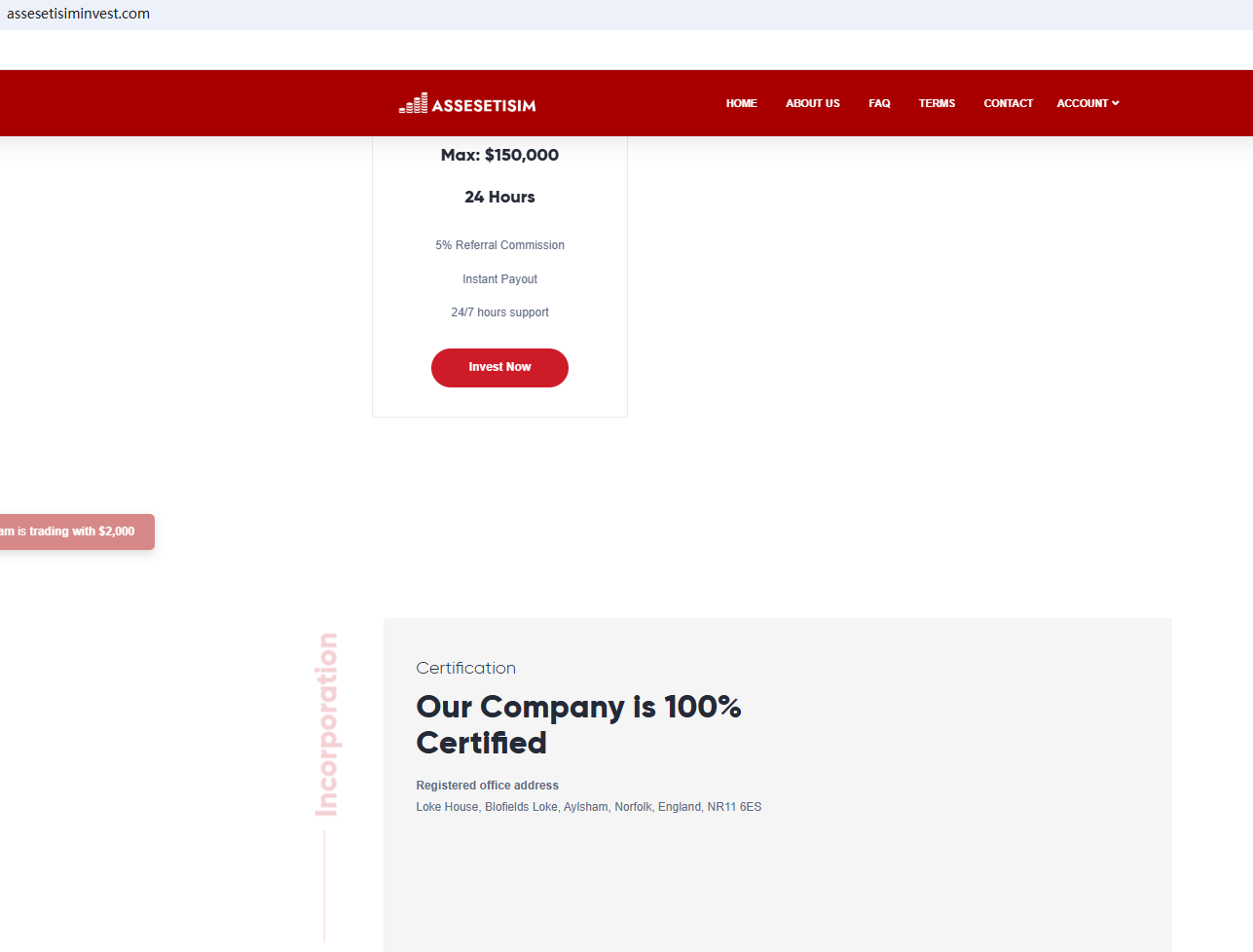 Menurut situs webnya, ia mengklaim terdaftar di Inggris pada tahun 2015. Setelah diselidiki, kami menemukan bahwa nama domainnya baru didirikan pada tahun 2025 dan Financial Conduct Authority (FCA) mengeluarkan peringatan terhadap ASSESETISIM, percaya bahwa perusahaan ini mungkin menyediakan layanan atau produk keuangan tanpa otorisasi yang tepat di Inggris.