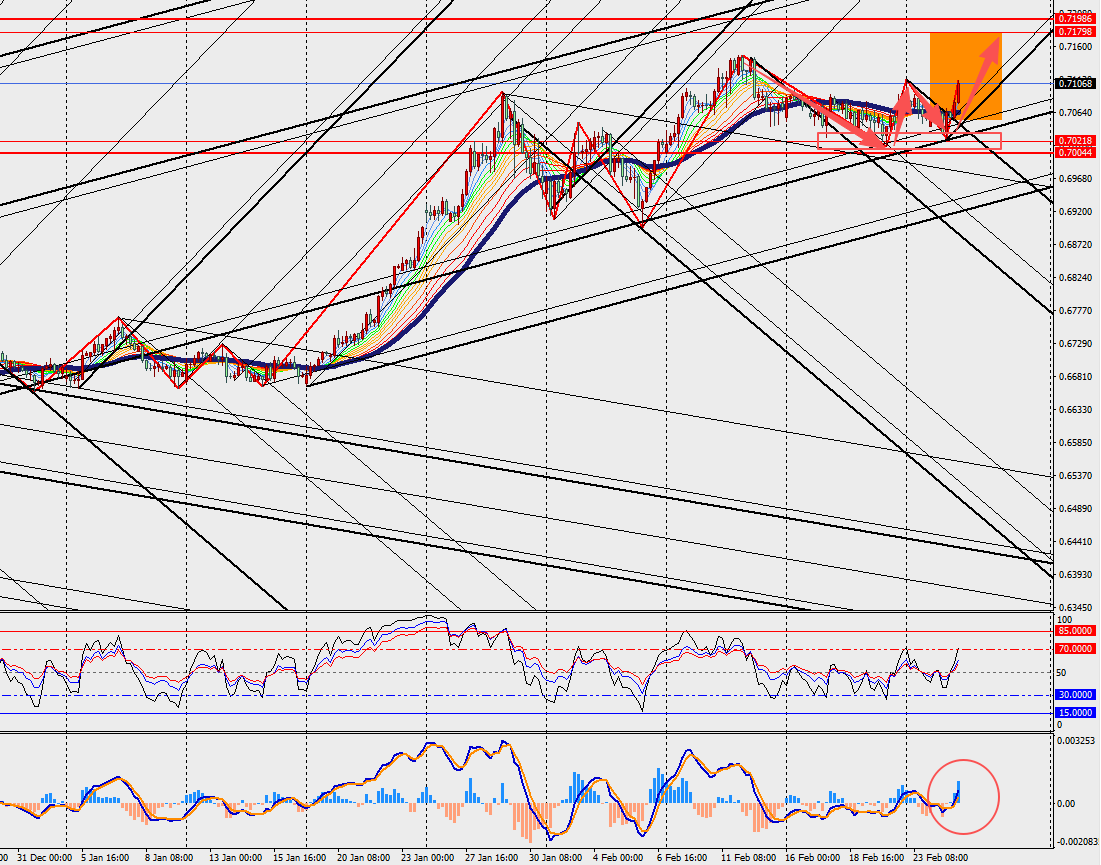 On the H4 chart, we can see AUD/USD is trending upward within a range, holding above the 48 hours moving average. In addition, both the MACD double line and energy bars are expanding around the zero line. The buy limit could be placed, stop loss is compulsory.