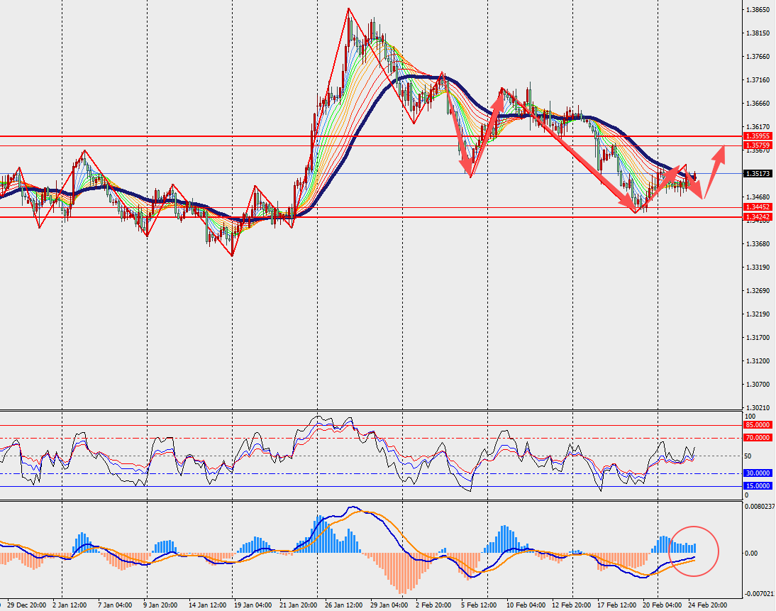 第一阻力位:1.3570 第一支撑位:1.3460