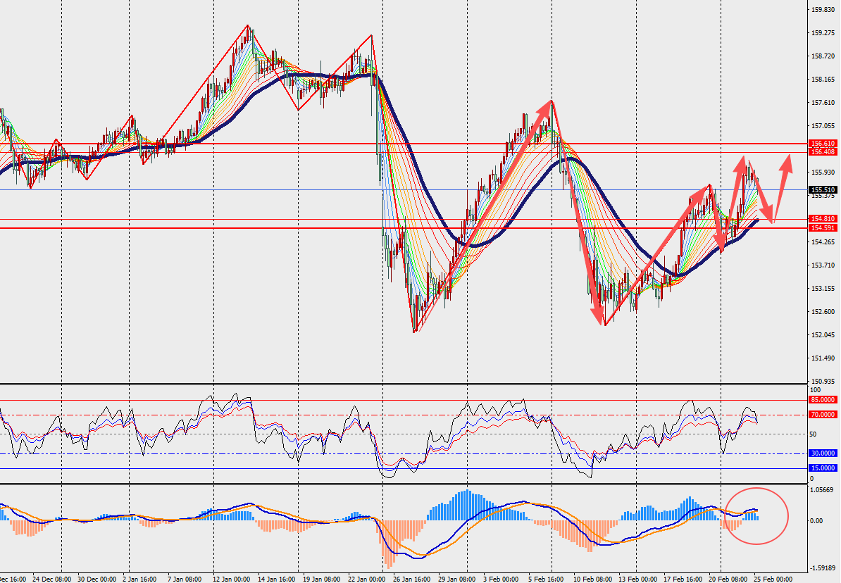 第一阻力位:156.30 第一支撑位:154.70