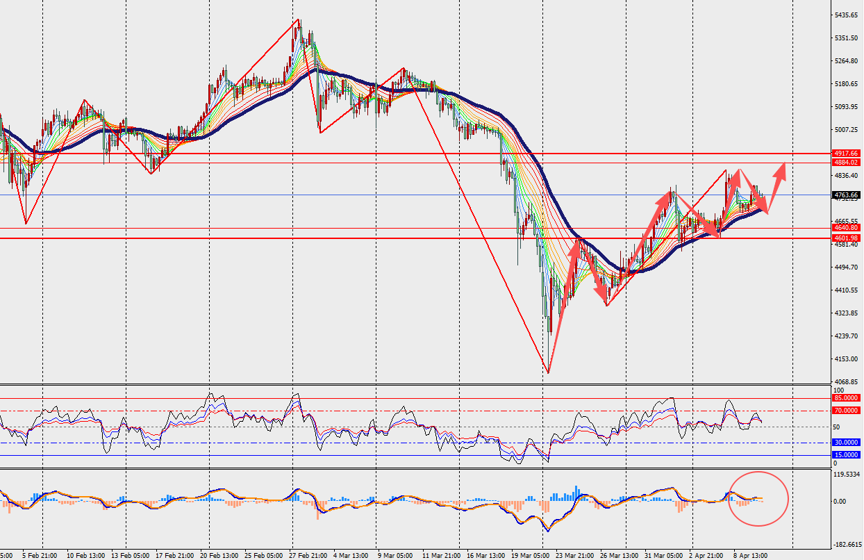 第二阻力位:4800.00 第二支撑位:4730.00