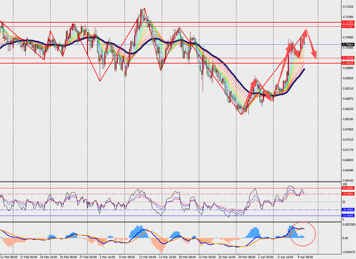 第一阻力位:0.7110 第一支撑位:0.7020