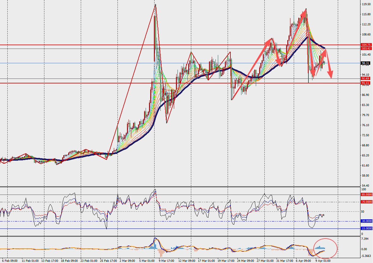 第一阻力位:105.00 第一支撑位:92.00