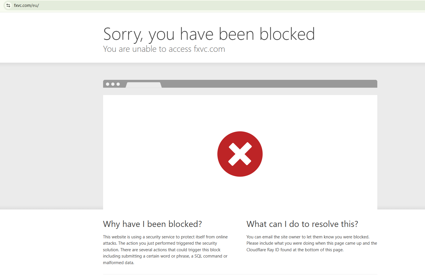 BrokersView menemukan bahwa domain "https://www.fxvc.com/eu/" saat ini tidak dapat diakses. Hal ini secara luas dianggap sebagai tanda bahaya yang signifikan, karena penangguhan situs web broker sering kali menunjukkan adanya masalah regulasi atau operasional yang mendasarinya.