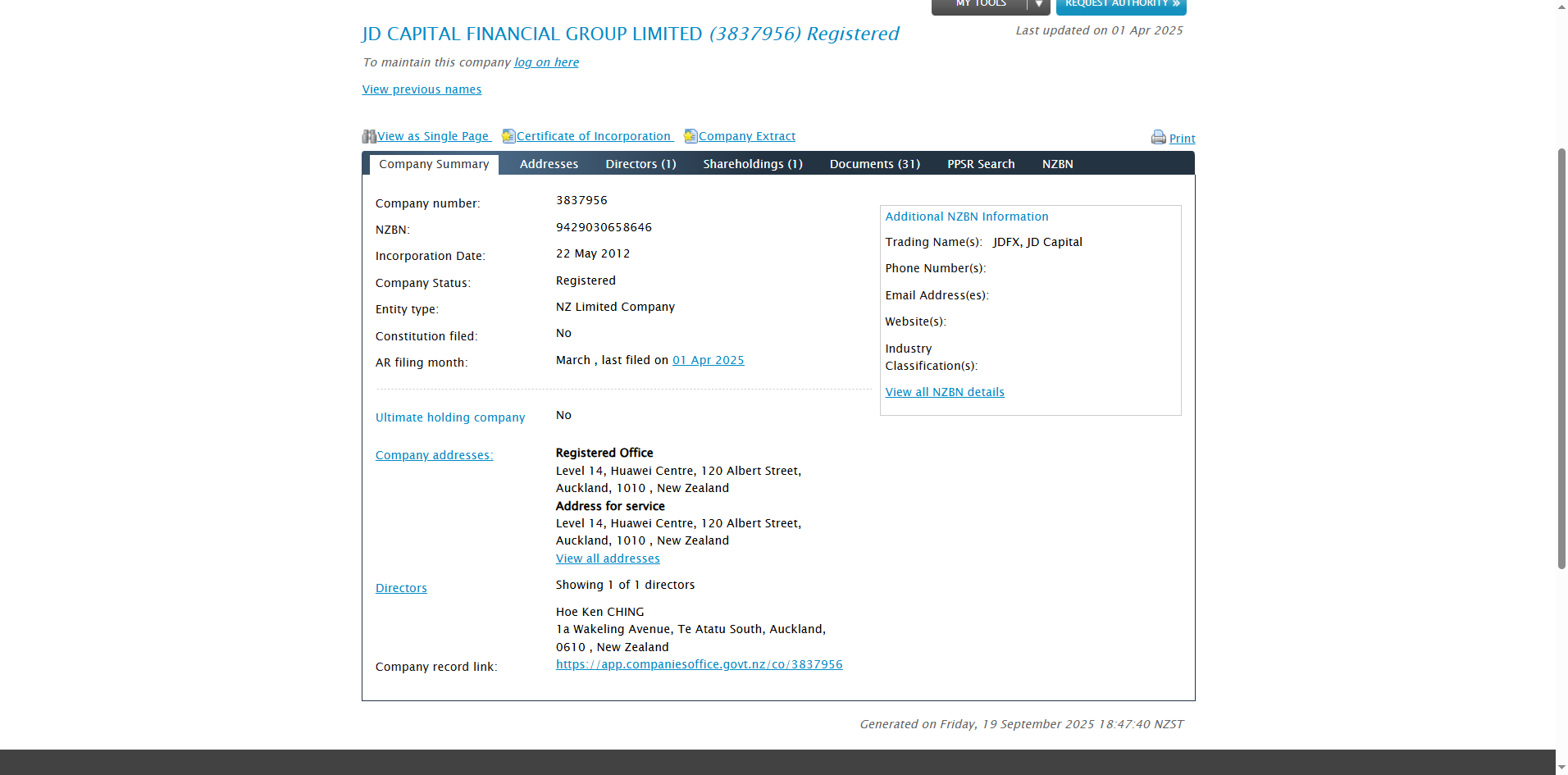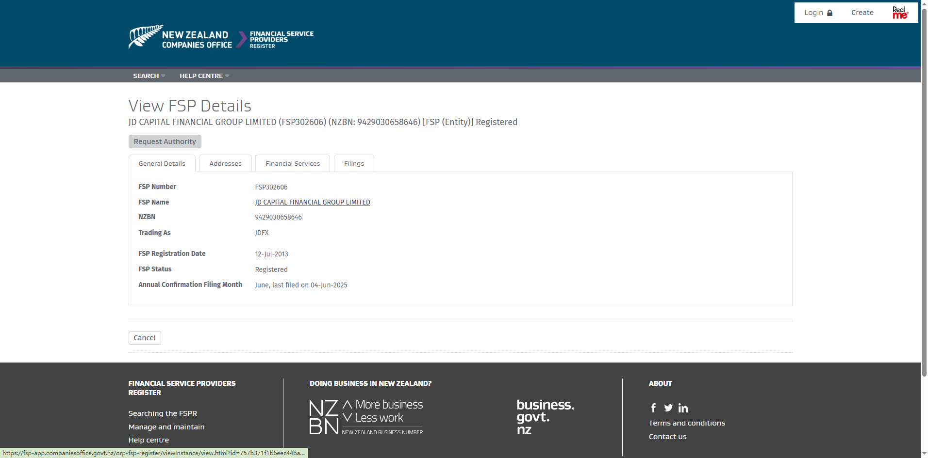 The platform claims to have been established in 2012 and is operated by JD Capital Financial Group Ltd, based in New Zealand. It states that it is registered as a New Zealand Financial Service Provider (FSP) under number FSP302606. While we have verified that this company does appear in the Financial Service Providers Register, several critical concerns have been identified.