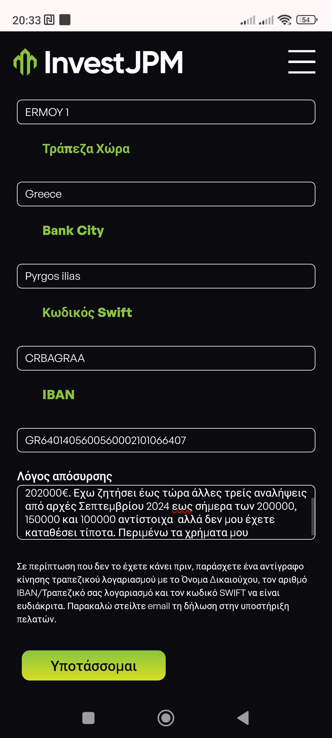 We have received your complaint, but you must know that InvestJPM is a scam broker (Website:https://investjpm.org; https://www.investjpm.com), you may refer to https://www.brokersview.com/brokers/investjpm.