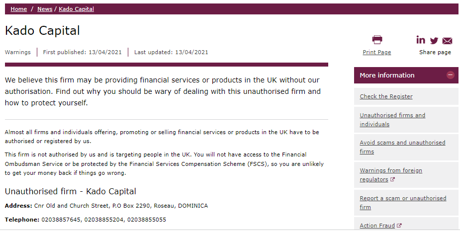 Belum lagi, broker tersebut juga telah diperingatkan oleh Financial Conduct Authority ( FCA ). Regulator memperingatkan investor untuk menghindari berurusan dengan perusahaan yang beroperasi tanpa izin.