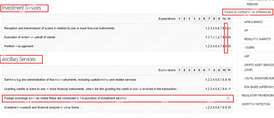 3. Dan Anda akan mendapatkan konten broker di situs CySEC. Saat ini Anda perlu memeriksa apakah broker mempunyai otorisasi untuk menyediakan '9 - Kontrak keuangan untuk perbedaan' di bawah 'Layanan Investasi' atau 'Layanan Valuta Asing yang terkait dengan penyediaan layanan investasi' di bawah 'Layanan Tambahan';