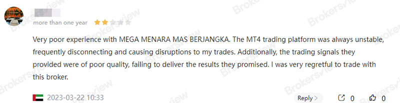 Pengalaman pelanggan yang negatif telah menimbulkan kekhawatiran terhadap stabilitas Mega Menara Mas Berjangka dan kualitas sinyal perdagangannya.