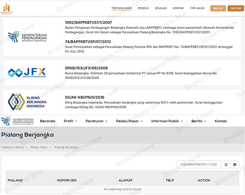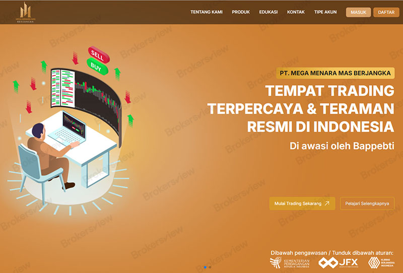 Mega Menara Mas Berjangka adalah broker Forex yang tidak diatur. Meskipun broker tersebut mengaku mendapat izin dan teregulasi oleh Badan Pengawas Perdagangan Berjangka Komoditi Indonesia (BAPPEBTI), Bursa Berjangka Jakarta (JFX) dan Lembaga Kliring Berjangka Indonesia (KBI), penelusuran kami di database BAPPEBTI tidak menemukan hasil apa pun terkait dengan broker ini Perusahaan cocok dengan catatan, dan dua lembaga lainnya juga tidak mengatur aktivitas broker forex. Oleh karena itu, dana investor di Mega Menara Mas Berjangka kurang memiliki perlindungan hukum.