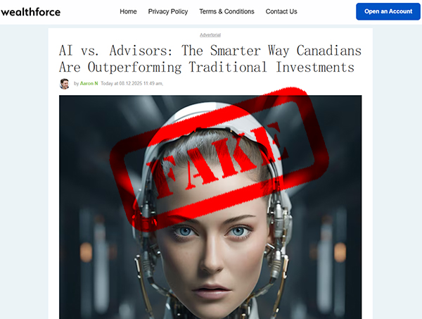 Organisasi Regulasi Investasi Kanada (CIRO) telah mengeluarkan peringatan publik tentang situs web investasi palsu, https://aitechsnews.com/ainewsob/, yang secara ilegal menggunakan nama dan logo Wealthforce Inc., sebuah firma sah yang terdaftar di CIRO.