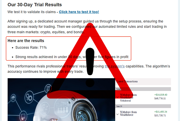 Taktik peniruan identitas merupakan ciri khas skema investasi palsu, di mana penipu memanfaatkan kepercayaan untuk menipu korban. Dalam kasus ini, Wealthforce palsu mempromosikan dirinya sebagai sistem perdagangan berbasis AI dengan tingkat keberhasilan 71% dan "keuntungan lima digit" dalam 30 hari, tetapi tidak memberikan data kinerja yang dapat diverifikasi.