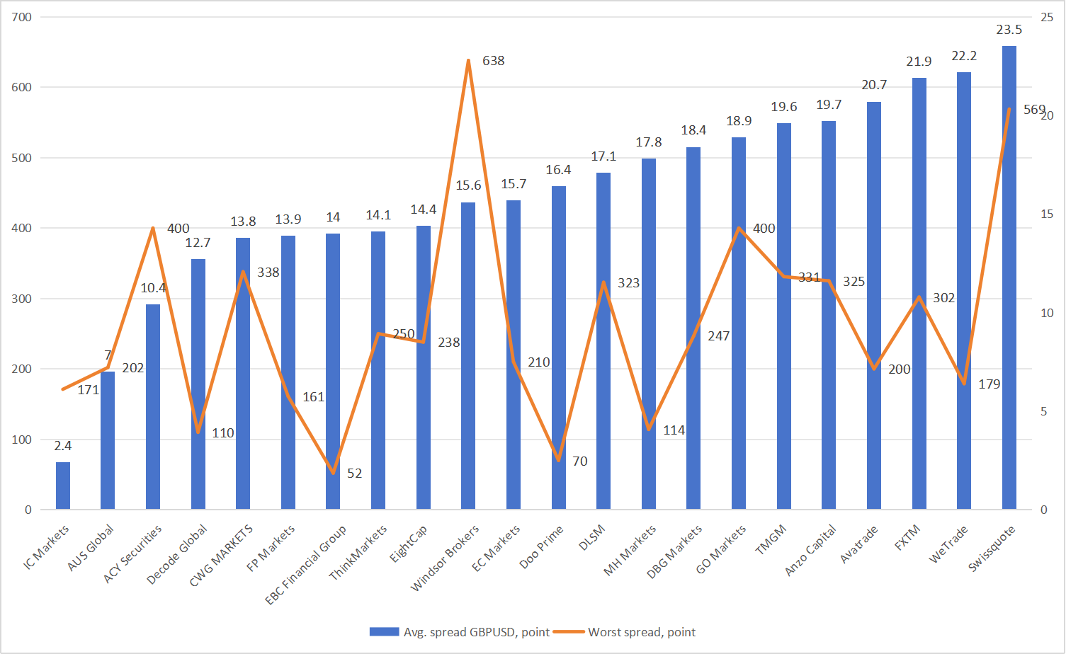 IC Markets kembali menawarkan spread rata-rata terketat sebesar 2,4 pip untuk GBP/USD, mempertahankan keunggulan kompetitifnya secara keseluruhan.