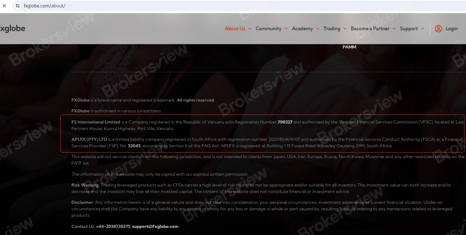 Meskipun FXGlobe mengklaim memiliki beberapa lisensi regulasi di situs webnya, para trader harus membedakan dengan entitas spesifik mana mereka terikat kontrak. Berdasarkan informasi kami, FXGlobe memang memiliki lisensi dari FSCA Afrika Selatan (No. 52045), tetapi regulasi ini terutama ditujukan untuk pasar lokal Afrika Selatan.